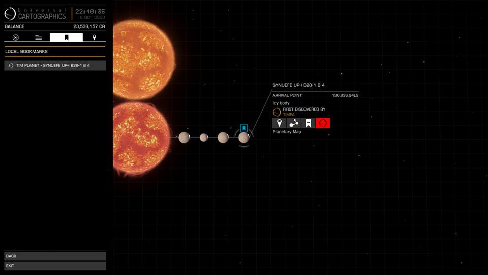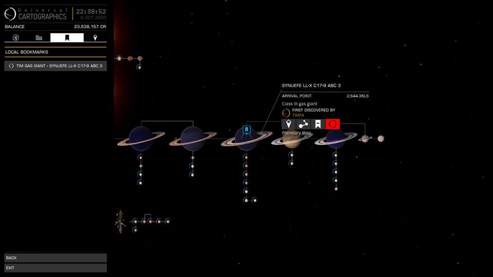 I found a few undiscovered places, including a planet, a star, and a gas giant with all its moons. My first steps as an explorer have been good ones!