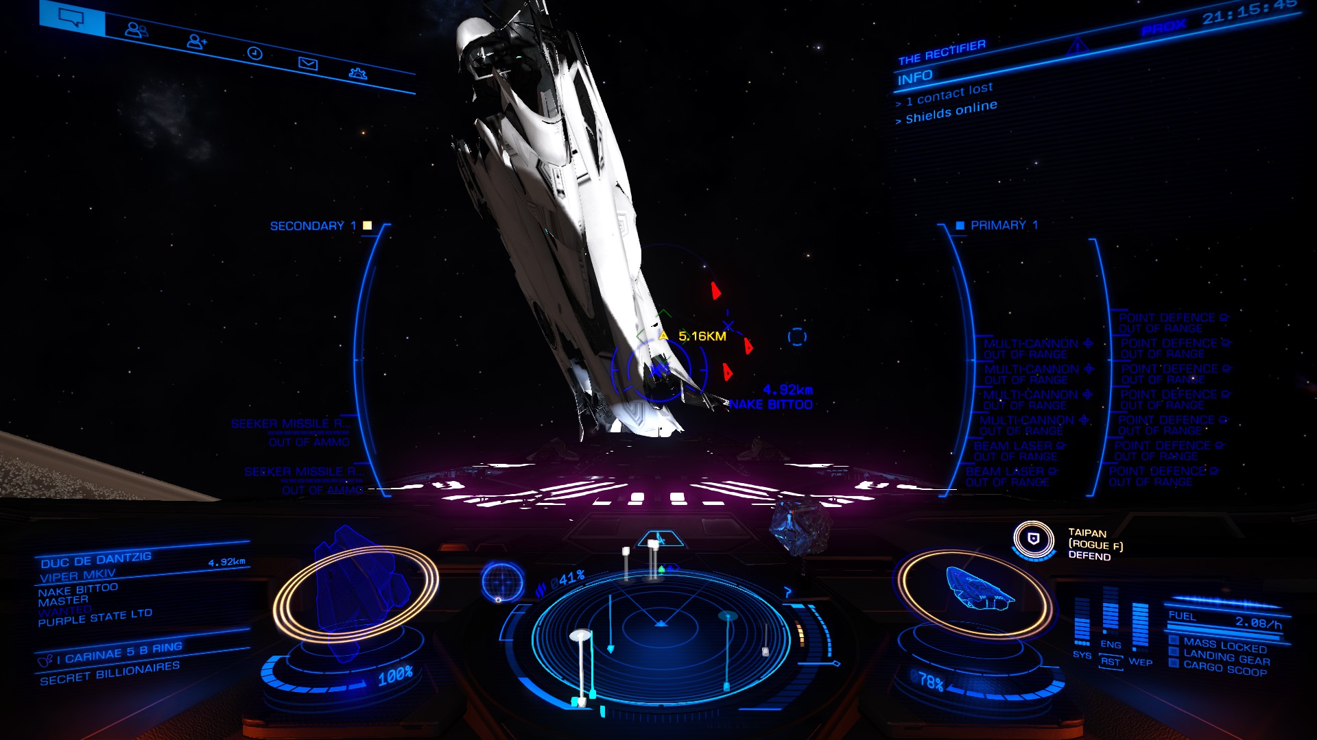 The Secret Billionaire's Campaign is a community goal where pirates and outlaws are cleaned up from the I Carinae System. I loaded out the Rectifier with some proper nasty multicannons and headed out to catch me some bounties.